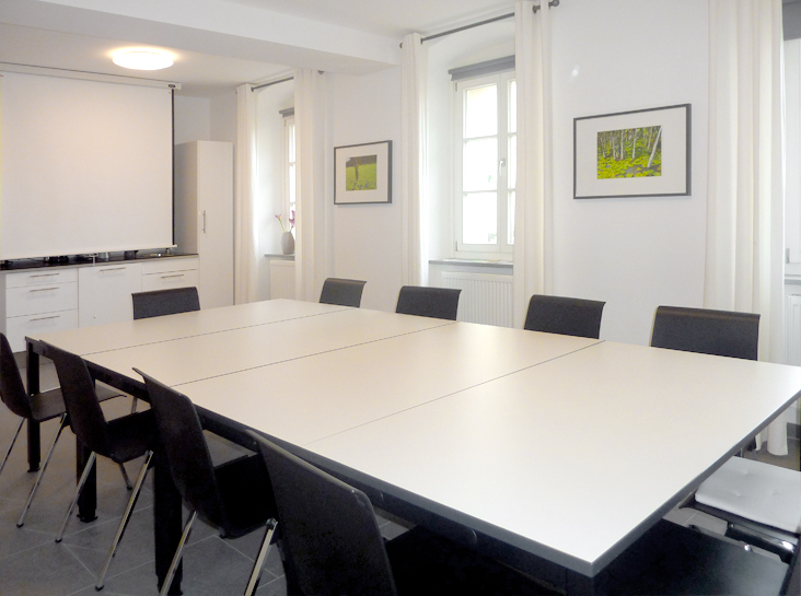 der Dechbettener Straße 6, 93049 Regensburg Tagungsräume. Für Ihre Tagungen, Seminare oder Projektmeetings stehen Ihnen 2 Räume zur Verfügung. Der Hauptraum bietet bequem Platz für rund 15 am Tisch sitzende Personen. Im separaten Nebenraum können gleichzeitig bis zu 6 Personen arbeiten. Beide Räume sind jeweils mit einem großen Whiteboard und Flipchart ausgestattet. Im Hauptraum stehen ein Beamer und eine entsprechende Projektionsleinwand zur Verfügung. Für die kleine Verpflegung (Kaffee, Tee, Gebäck, etc.) ist eine Küchenzeile vorhanden.