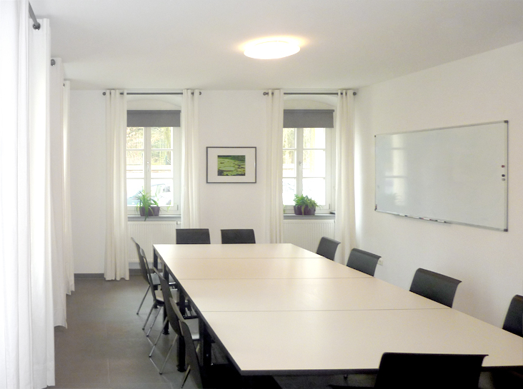 der Dechbettener Straße 6, 93049 Regensburg Tagungsräume. Für Ihre Tagungen, Seminare oder Projektmeetings stehen Ihnen 2 Räume zur Verfügung. Der Hauptraum bietet bequem Platz für rund 15 am Tisch sitzende Personen. Im separaten Nebenraum können gleichzeitig bis zu 6 Personen arbeiten. Beide Räume sind jeweils mit einem großen Whiteboard und Flipchart ausgestattet. Im Hauptraum stehen ein Beamer und eine entsprechende Projektionsleinwand zur Verfügung. Für die kleine Verpflegung (Kaffee, Tee, Gebäck, etc.) ist eine Küchenzeile vorhanden.